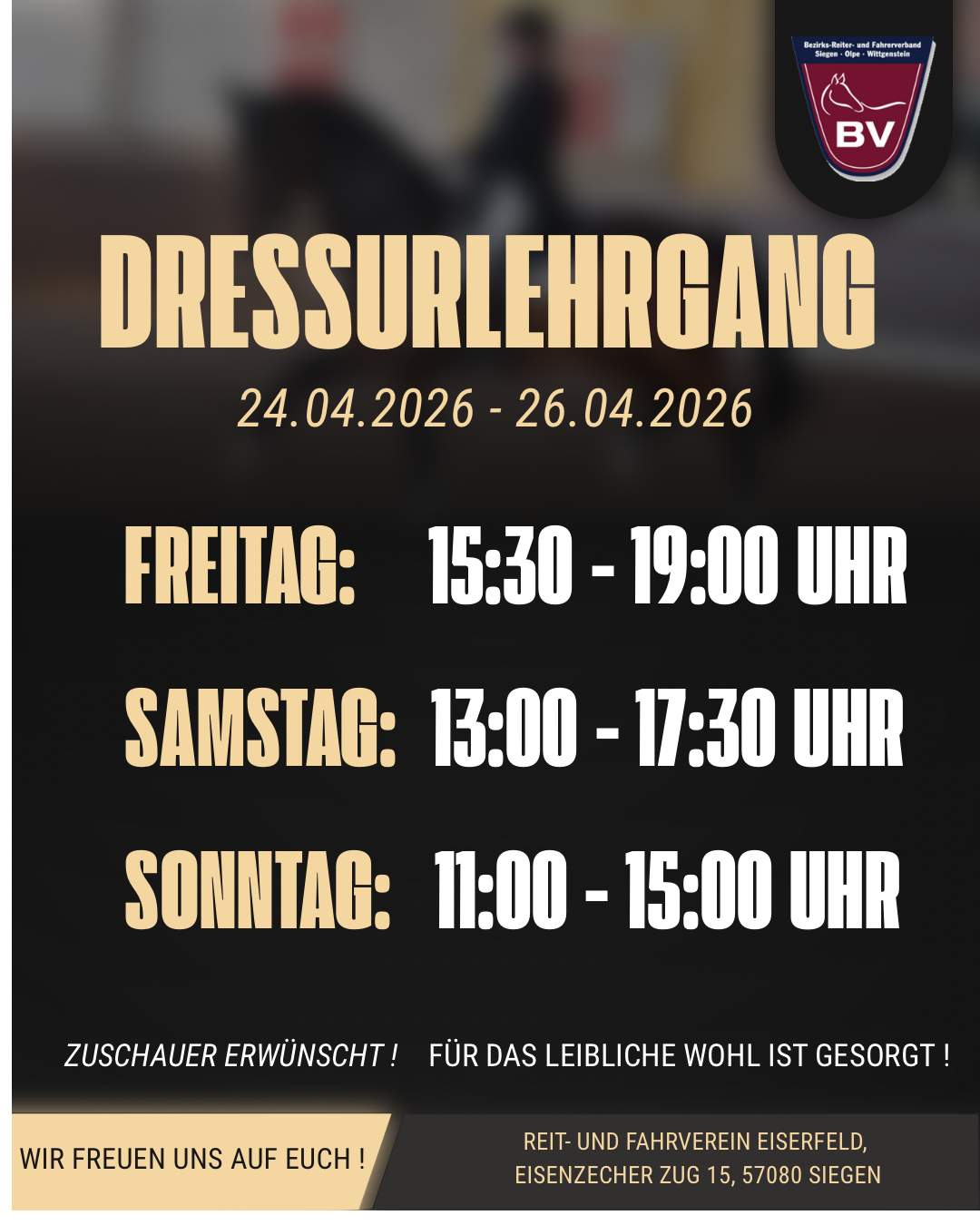 16 Apr. 2026 Zeiteinteilung Dressurlehrgang bei Stefan Michalke von AnnaSchuerbuschHoof | eingetragen in: Allgemein, NEWS | Die Zeiteinteilung für den 24.–26. April 2026 steht 🗓️ Wir freuen uns auf alle Teilnehmenden und Zuschauer. Post Views: 9